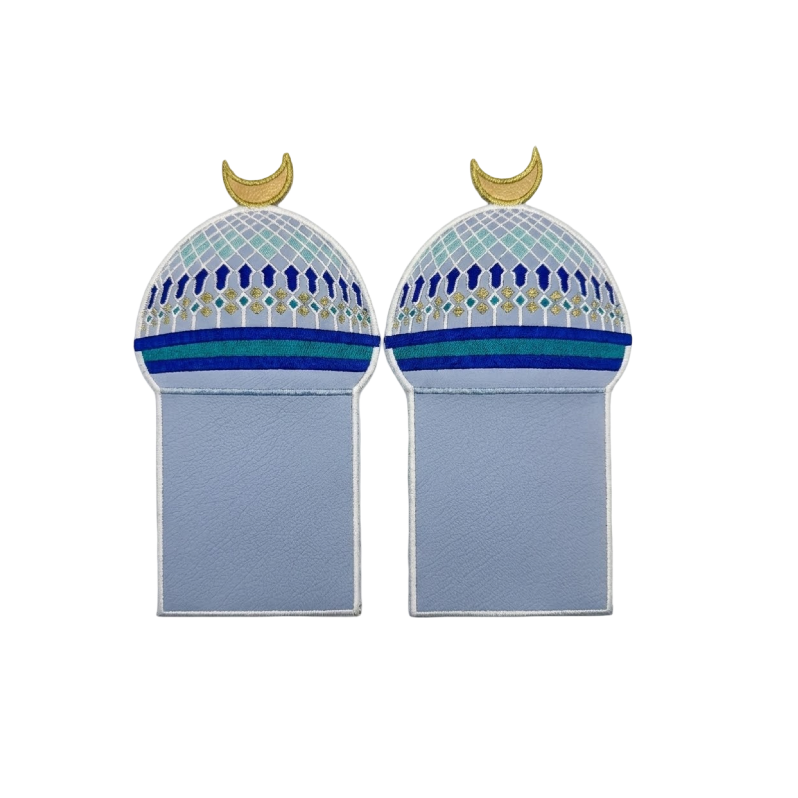 Beautifully crafted cutlery pouch is designed to bring elegance to your Ramadan table setting. The pouch is shaped in a graceful blue dome, offering a soft, inviting silhouette. Made from high-quality blue leather, it features a stunning blend of blue, and gold details that add a vibrant, festive touch.