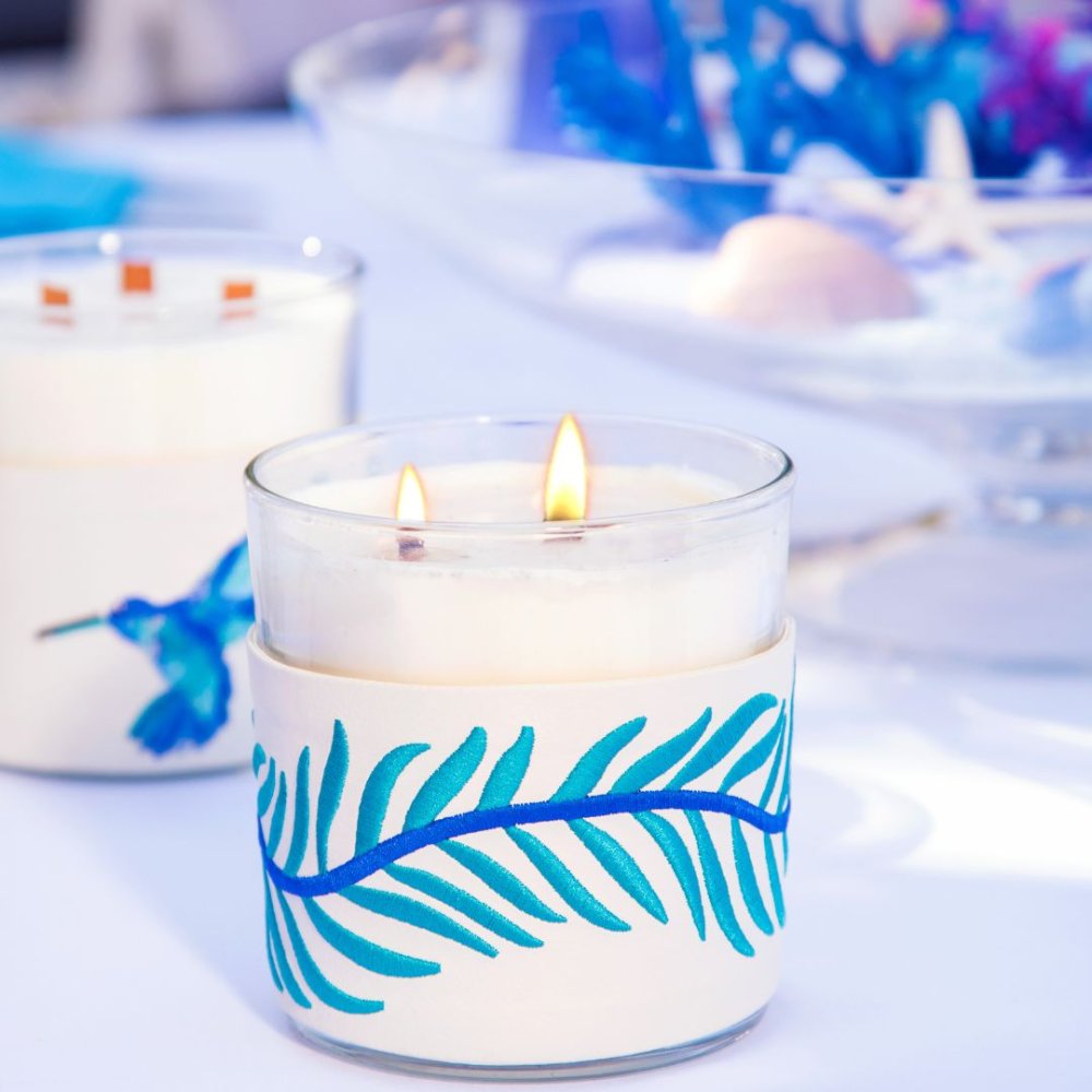 Strong scented fragrance candle with a lovely embroidered branch ring