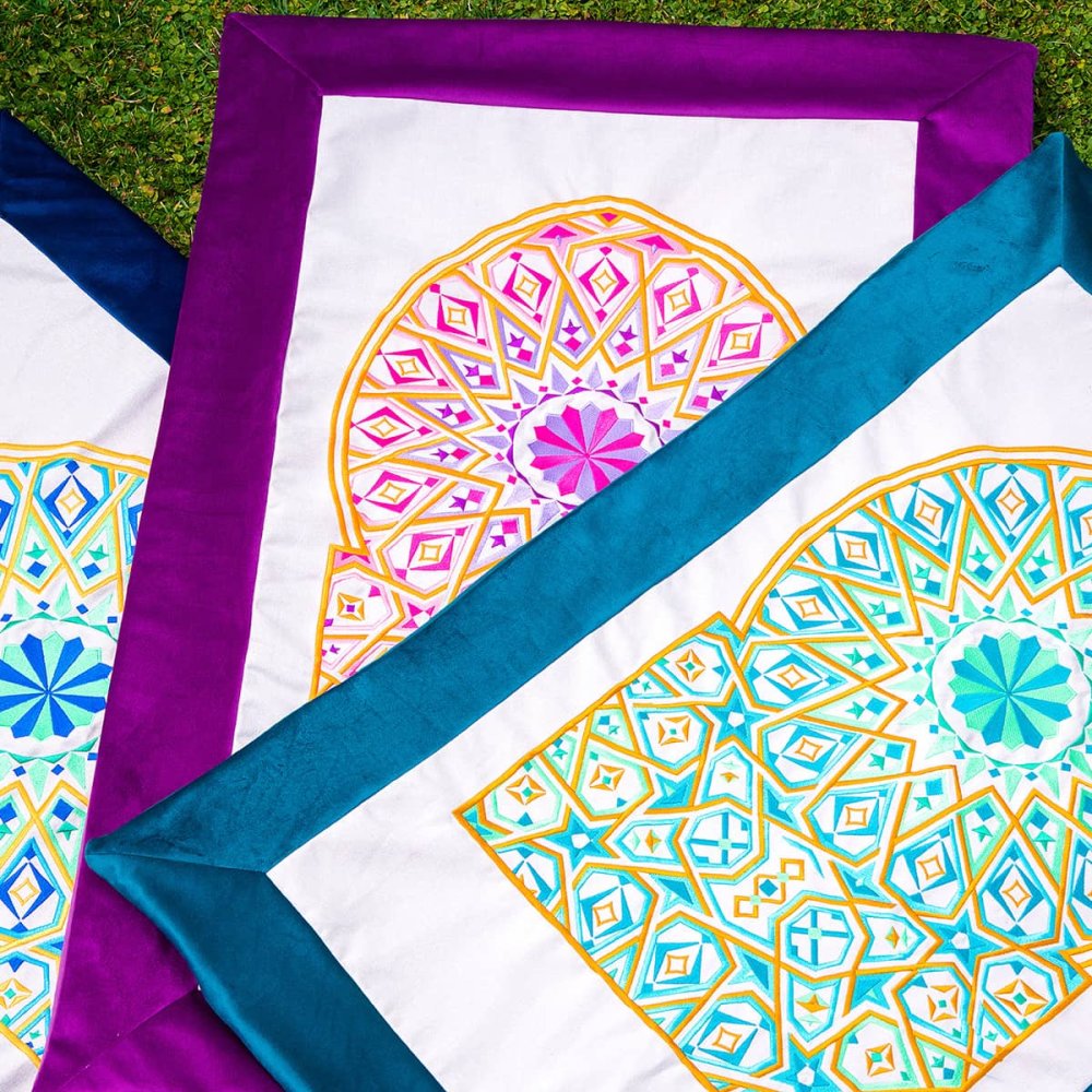 Islamic Pattern praying carpet. This pattern is a pieces of art in geometric form and floral motifs. Available in 3 different color