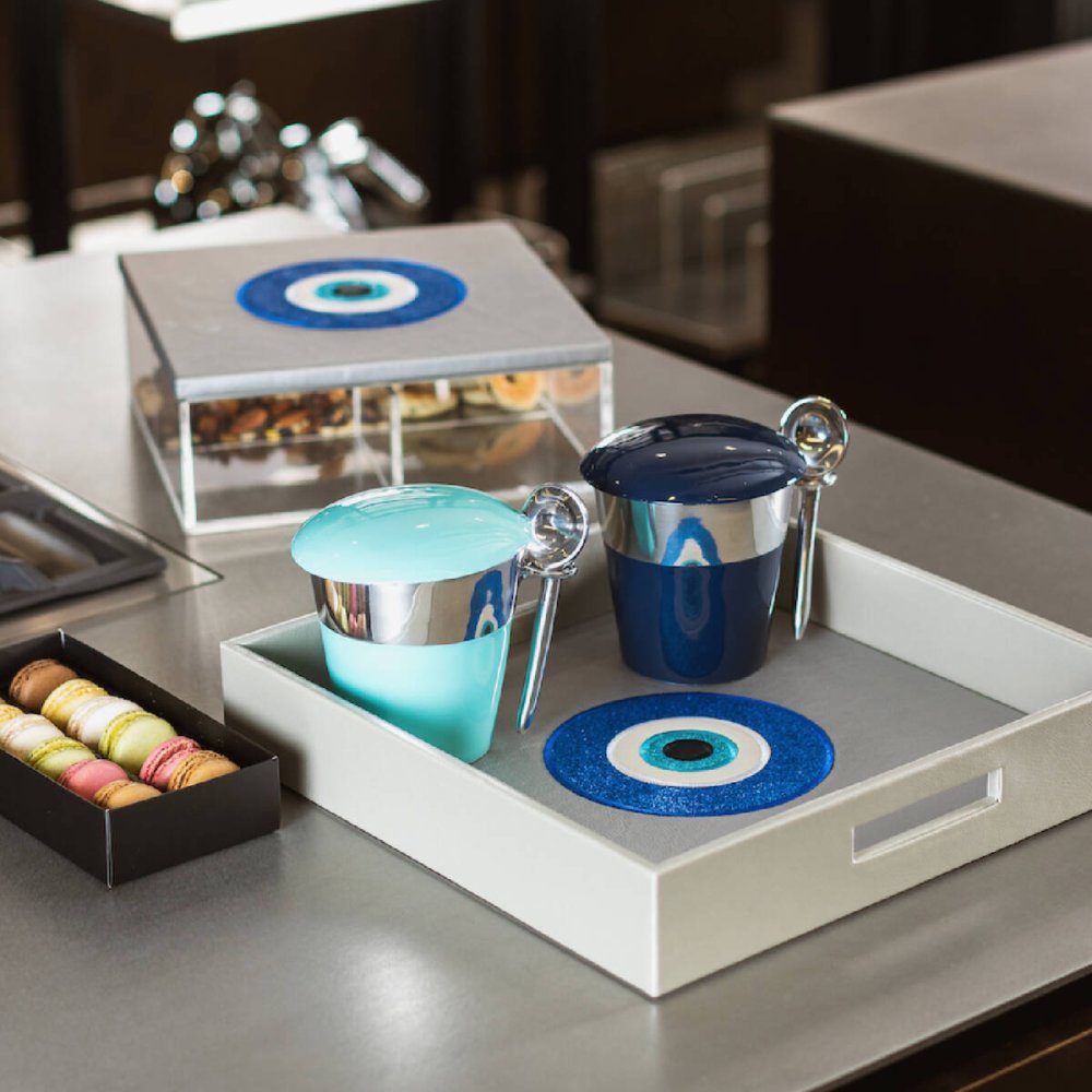 leather cover (with eye glitter) for our handy acrylic boxes that come with a divided base.
