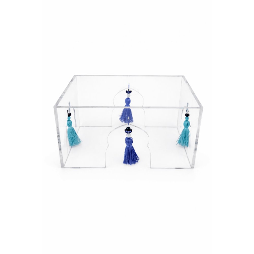 Echoing the serene blue tones of the Ramadan night sky, the Sama Ramadan Stand combines a sleek acrylic design with delicate blue tassels. A modern display piece that brings a sense of calm, reflection, and understated elegance to your Ramadan table or décor.